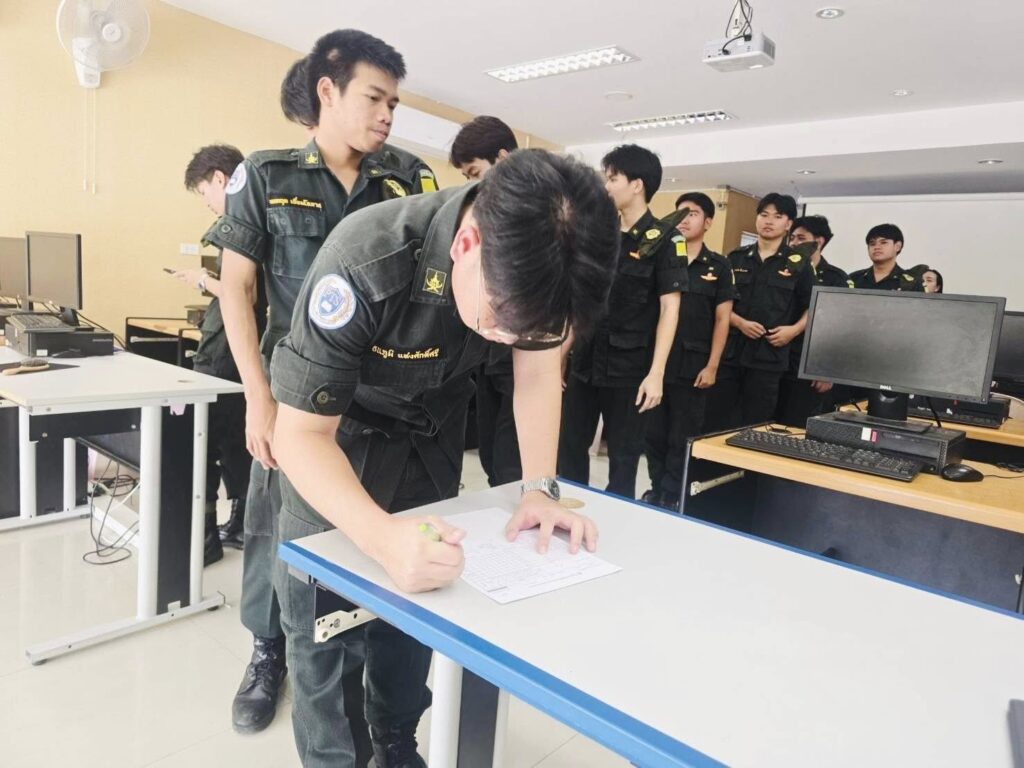 Posted inนักศึกษาวิชาทหาร ภาพกิจกรรม การสอบภาคทฤษฎีของนักศึกษาวิชาทหาร ในระบบออนไลน์ ส่วนภูมิภาค ประจำปีการศึกษา 2568 Posted by Prawit Phunpracha 14 ธันวาคม 2025No Comments นักศึกษาวิชาทหาร วิทยาลัยเทคโนโลยีพัฒนเวช เข้าร่วมการสอบภาคทฤษฎี ในระบบออนไลน์ ส่วนภูมิภาค ประจำปีการศึกษา 2568 ใน วันที่ 14 ธันวาคม 2568 ณ วิทยาลัยเทคโนโลยีพัฒนเวช Prawit Phunpracha View All Posts Post navigation Previous Post พัฒนาทักษะภาษาอังกฤษให้พร้อมใช้งานจริงในสถานประกอบการ English skills for effective communication in the workplace.Next Postนิเทศตรวจเยี่ยมนักศึกษาฝึกงานในสถานประกอบการ ประจำปีการศึกษา 2568